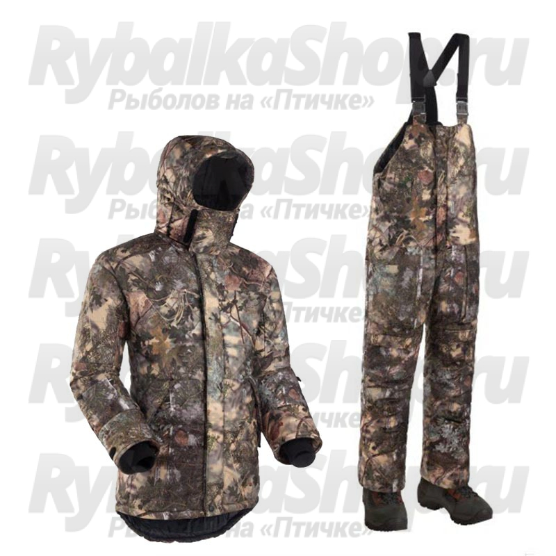 Практичный и тёплый зимний камуфляжный костюм для охоты и рыбалки. Синтетический утеплитель Thinsulate®. Уникальные расцветки камуфляжа способны сделать вас практически невидимым! Костюм рассчитан на то, что человек будет долгое время находиться без движения при очень низкой температуре. Плотная нешуршащая мембранная ткань верха защищает от ветра, мокрого снега и мелкого дождя и дышит. Ткань прочная и не порвется, если зацепиться за ветку в лесу. Куртка длинная + удлиненная спинка. Полукомбинезон с высокой спинкой и грудью.