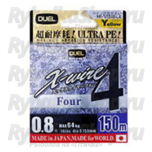 Плетеный шнур Duel PE X-WIRE 4 150m Yellow #1.0 8.0 kg. (0.171mm)