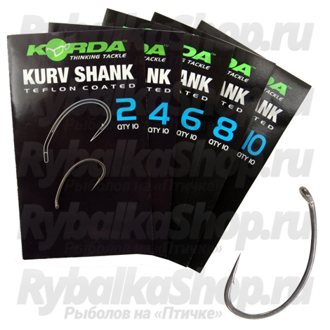 Карповые крючки Korda Kurv Shank - благодаря изогнутому цивью достигается великолепная засечка карпа за нижнюю губу. При попадании рыбе в рот, карповый крючок 100% разворачивается жалом вниз. Благодаря этим свойствам нет необходимости дополнительно устанавливать термоусадку.