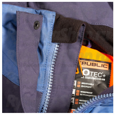 При изготовлении данного костюма использовался материал PROtec+ от Adrenalin Republic, запатентованный компанией Adrenalin. Данный материал обладает большим запасом прочности, а благодаря его структуре костюм сохраняет водоотталкивающие и дышащие свойства даже при низких температурах. Мембранная ткань PROtec+ производится из перерабатываемого полиэфира, благодаря чему костюм безвреден для здоровья и не раздражает кожу. Температурный режим костюма Rover -35 градусов. На куртке имеются два накладных боковых кармана, для размещения полезных вещей и согревания рук.