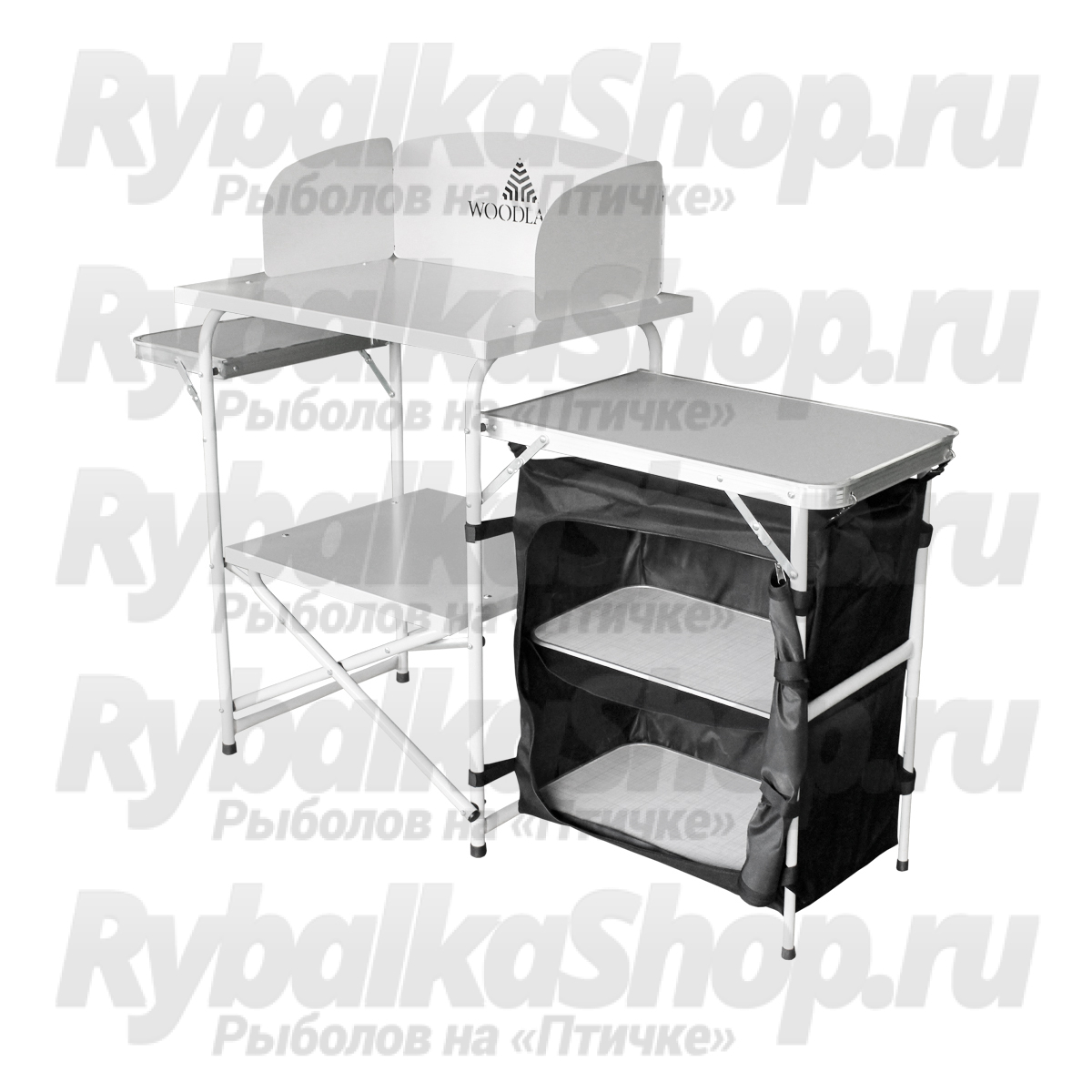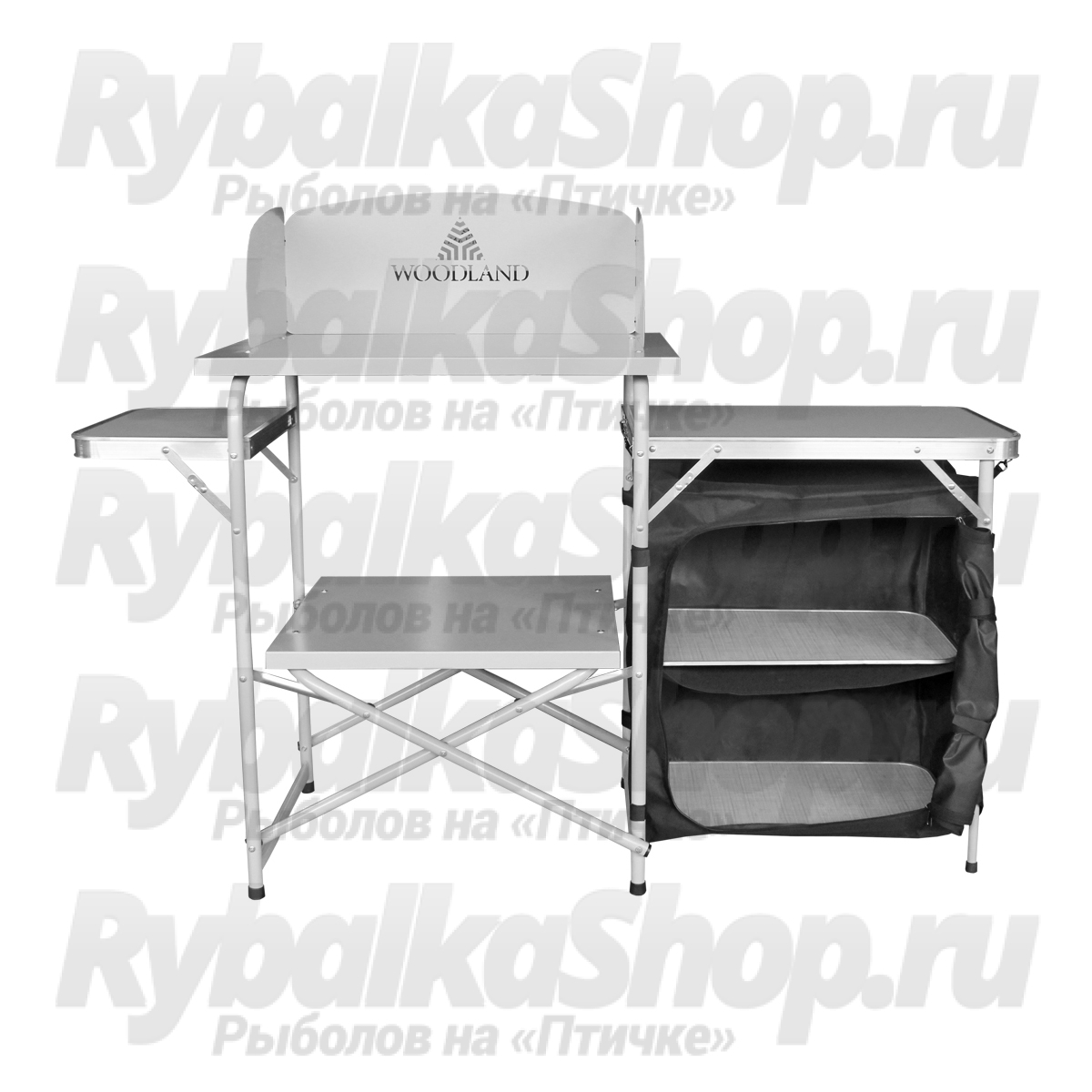 Если вы часто путешествуете, любите провести выходные на природе, то вас должна заинтересовать легкая, прочная, складная кухня Woodland Camping Kitchen. В сложенном виде кухня помещается в сумку для хранения. Каркас выполнен из алюминия, что существенно облегчает конструкцию. Обратим внимание на функциональные особенности. Место установки плиты снаюжено ветрозащитным экраном. Ниже имеется полка для хранения куханной утвари. Справа и слева - две рабочие поверхности. По окончанию приготовления, правую столешницу вполне можно использовать в качестве обеденного стола.
