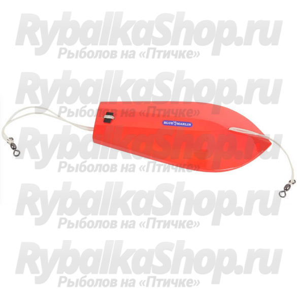 Заглубитель Deep Boat. Ведет приманку на глубине до 18м. При поклевке выводит рыбу на поверхность. Рекомендуем поводок L= 5-8m. D 0.8-1.5mm к заднему шнуру через вертлюг и легкую яркую приманку: BMF Tuna,BMF 5014, легкую блесну под сардину L= 10-15 см.