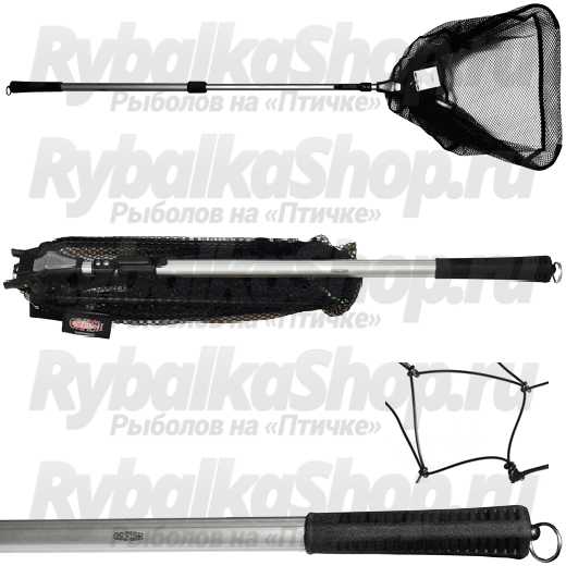 Удобный раскладной подсак, длина подсака в максимально разложенном виде составляет 140-230см, алюминиевая телескопическая рукоять не деформируется от серьезных нагрузок.