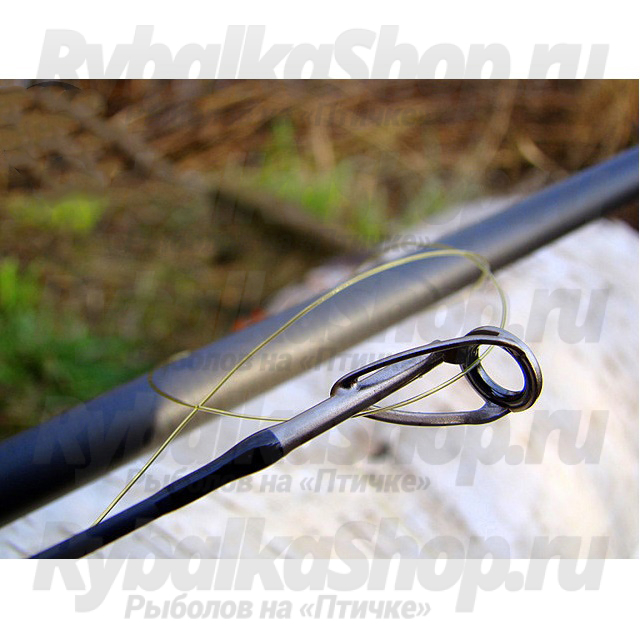 В производстве спиннингов Parabellum применяются легкие, отзывчивые бланки из высокомодульного углепластика 30T и лучшие пропускные кольца Fuji(R) SiC. Форма рукоятки - классическая, материал - португальская пробка в комплекте с катушкодержателем Fuji черного цвета. У верхней части рукоятки на бланке удилища имеется проволочная петля для фиксации тройника приманки.