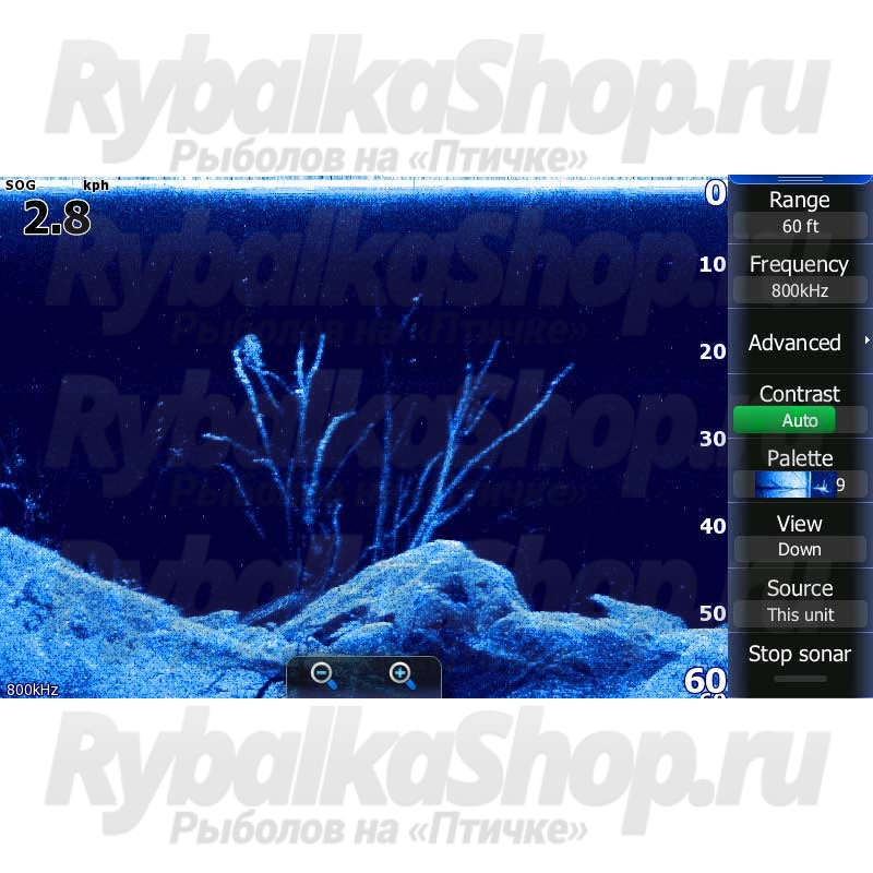 Максимальная глубина(м) DownScan Imaging™: Макс. 300 ft / 91 м @ 455/800 KHz