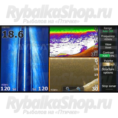 Эксклюзивная технология от Lowrance – DownScan Overlay, объединяет два лучших способа зондирования толщи воды под вашим судном, это: с помощью широкополосного сонара Broadband Sounder и нижнего сканирования DownScan Imaging.