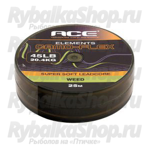 ACE Camo Core - Weed 20m - быстротонущий поводковый материал английской компании "ACE". Имеет высокую стойкость к истиранию. Легко вяжется. Благодаря камуфлированному цвету обеспечивает отличную маскировку в водоемах с обилием водорослей. Поставляется в размотках по 20 метров, в удобной пластиковой упаковке.
