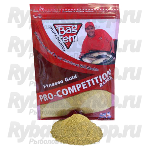 Серия профессиональных рыболовных прикормок разработал ведущий английский рыболов Neil Machin. При этом учитывался огромный накопленный за многие годы рыболовный опыт. Они тестировались лучшими английскими рыболовами. С помощью Pro-Competition groundbaits от Bag’Em было выиграно множество соревнований в Великобритании и континентальной Европе. Все серия сыпучих прикормок Pro-Competition groundbaits сделаны только из лучших высококачественных перемолотых пелетсов на основе рыбной муки, с использованием уникальных аттракторов. Очень высокое содержание рыбной муки гарантирует, что эти прикормки – самые эффективные, которые вы только можете купить. Ни в одном из своих рецептов мы не использовали наполнители типа панировочных сухарей и прочего. Многие компании идут на это, чтобы сделать прикормку более дешевой, в ущерб качеству. «Эти фантастические прикормки были разработаны и проверены мной лично и всей Командой Bag'em. Они произведены, используя только самые лучшие, высшего качества рыбную муку и гранул, с моими уникальными аттракторами. Крайне высокое содержание рыбной муки гарантирует, что эти прикормки являются самыми эффективными, которые вы можете купить! Sweat Breams, Super Skimmer Light and Dark, являются моими прикормками для ловли Леща, и другой белой рыбы, т.к. содержат все необходимые элементы, включая бисквит и зерновые добавки, для привлечения рыбы.» Neil MachinF1nesse groundbait - New for 2013. F1 теперь стали сегодня одной из наиболее распространенных разновидностей карповых рыб, регулярно встречающихся на коммерческих водоемах. Помня об этом, я разработал две новых прикормки, предназначенных для того, что поймать одну из самых трудных рыб, по мнению многих рыболовов. Некоторые места встречи лучше отвечают на определенные цвета. Обе прикормки идентичные за исключением цвета, естественного или зеленого. Обе наполнены компонентами, которым просто не может сопротивляться F1. Эти компоненты были также пропитаны сладкой приправой, которая испускает привлекательный сладкий аромат.