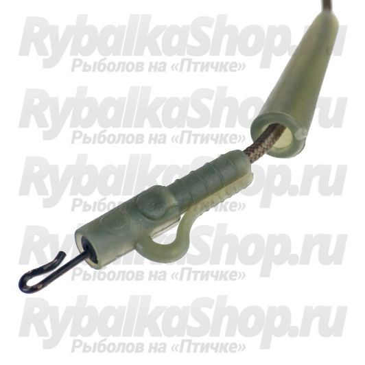 Готовая оснастка изготовлена из лидкора Gardner Heavy Plummet Lead Core 45lb и вертлюжка Gardner Covert Kwik Lok Swivels. На вертлюжке закреплена клипса для крепления грузил Gardner Covert Multi Lead Clips и силиконовый конус Gardner Covert Tail Rubbers.