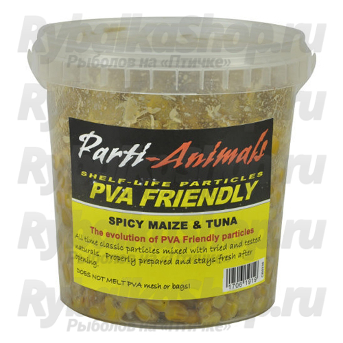 - PVA Friendly Parti Animals Parti Mix Garlic & Krill - зерновая смесь из конопли, пшеницы и кукурузы. Плюс мясо криля. Сдобрено чесноком