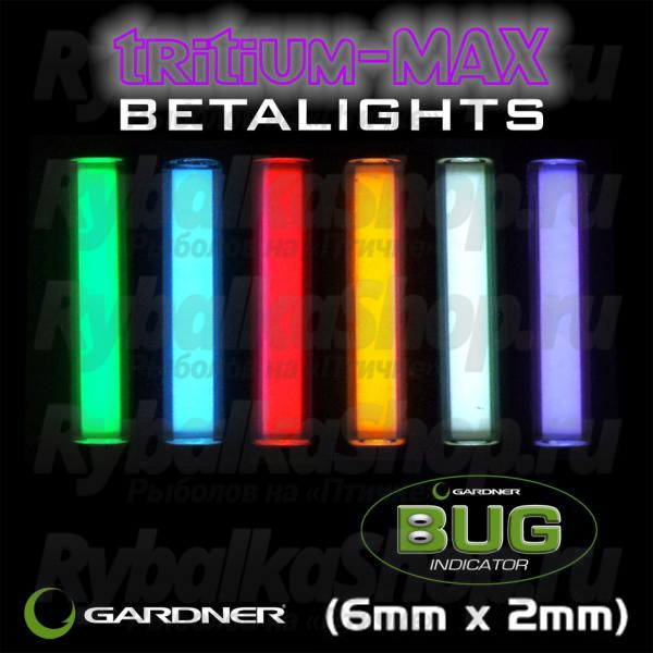 NANO TRITIUM-MAX Betalight 6mm x 2mm – предназначены для сигнализаторов поклевки NANO BUGS Gardner. Имеют круглое поперечное сечение. Цвета: Green, Red, Ice Blue, Purple, White & Orange.