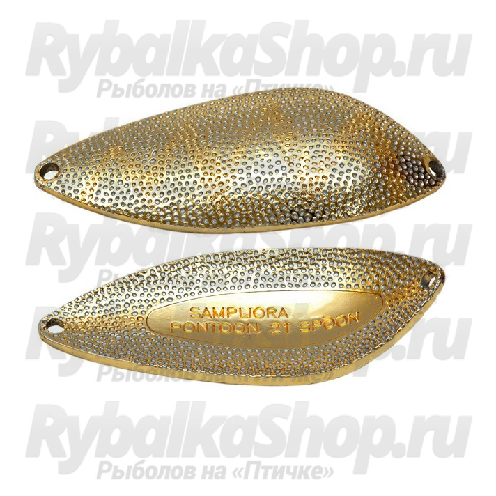 Но и это еще не конец. Сама приманка покрывается золотом в 24 К и серебром, а на ее поверхности проведены небольшие, но часто расположенные, впадины. Края этих впадин создают 3D – эффект, блестя на боковом освещении. Также не мало интересна и окраска, нанесенная на блесну, она занимает дно впадин и усиливает ощущение объема при погружении в воду. Сама блесна отсвечивает то серебристым, то золотистым, а то и полупрозрачным оттенком. Несомненно, примененные драгоценные материалы, уровень исполнения и идея, реализованная в блесне Sampliora от Pontoon 21, выводит эту приманку на новый уровень и ставит ее в один ряд с лучшими блеснами этого класса. Блесна Pontoon 21 Sampliora станет настоящим бестселлером для поклонников ловли на подобного типа приманки.