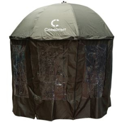 Большой рыболовный зонт с алюминиевым каркасом предназначен для защиты от дождя и солнца. Регулируемый угол наклона. Может использоваться как пляжный зонт.