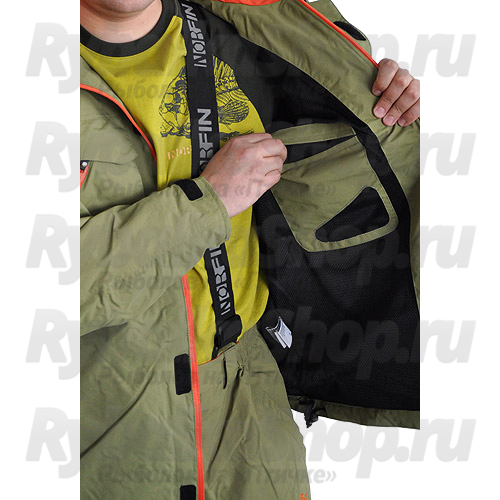 - Третий слой полностью защищает тело рыбака от внешних погодных влияний.