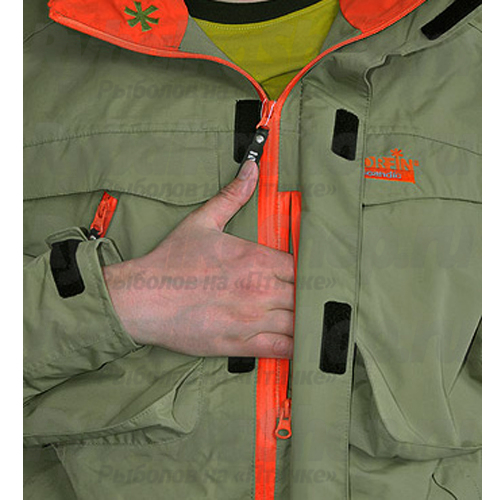 - Третий слой полностью защищает тело рыбака от внешних погодных влияний.