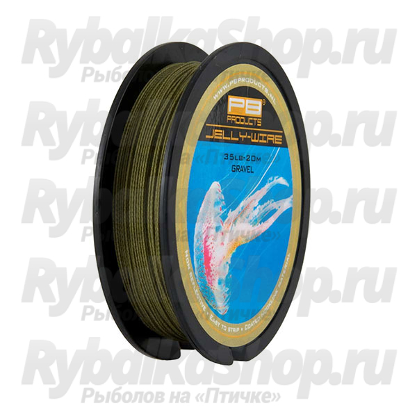 PB Product Jelly Wire - быстротонущий поводковый материал, имеющий мягкую, хорошо сплетенную основу с достаточно жесткой прозрачной оболочкой, которая исключает запутывание и перехлесты поводка. Данный поводочный материал выпускается в трех цветовых решениях: гравий, водоросли или ил.