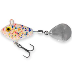 Приманка Мандула "Флажок" XXL Fish Модель №31 с лепестком Willow Leaf (Ивовый Лист) американского производства на шариковом вертлюжке совершает вращательные и колебательные движения одновременно. При этом легкая вторая секция также виляет, что создаёт имитацию движения рыбки и не остается без внимания крупного окуня, щуки и судака. Длинный лепесток лучше работает на течении. Судак, по опыту, клюёт на неё не реже, чем на Модель №1. Пузатая мелочь, которая в состоянии сесть только на мелкий крючок первой или второй модели, здесь остаётся не при деле и гордо соскальзывает с обсосанного лепестка. На большой тройник садится окунь от 500 г и судак от 200 г.