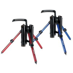 Стойка предназначена для ношения и стационарного расположения трех спиннингов с прикрепленными катушками (имеются специальные углубления для фиксации и позиционирования катушек шпулями в разные стороны, не дают им биться друг о друга), предохраняет ваши спиннинги от контактов с почвой, создает удобство в обслуживании снастей в одиночку. Удобная ручка для переноски позволяет перемещаться со спиннингами на дальние расстояния, не сворачивая снасти. Три телескопические стойки раздвигаются в разные стороны, образуя три удобные точки опоры и регулируются по длине и ширине вылета, оснащены на концах уходящими в почву заострениями, что позволяет устанавливать стойку с удилищами на берегу с любым наклоном почвы, на котором только может устоять или усидеть рыболов. Отличается от стойки Прессо уменьшенными размерами штатива, ручка для переноски складывается и стойка умещается в удобную сумку для переноски, которая входит в комплектацию.