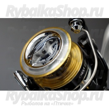 Главная пара шестерней спроектирована с использованием фирменной технологии "Digigear II", существенно увеличивающей срок износа и четкость работы механизма. Изготовлена она из цинково-алюминиевого сплава. Катушка Daiwa Crest снабжена мгновенным стопором обратного хода. Лесоукладыватель сделан из нержавеющего сплава с роликом Twist Buster, понижающим степень перекрученности лески перед укладкой. Еще одна фирменная технология, примененная в конструкции катушки Daiwa Crest - это система замедленного перемещения шпули Advanced Locomotive Levelwind, она обеспечивает ровную и плотную намотку без бугров и провалов. Шпули, которыми комплектуются безынерционные катушки Daiwa Crest, выполнены по схеме ABS (обратный конус), поэтому становится возможным выполнить самые дальние забросы даже с легкими приманками без риска образования петель и захлестов. Наличие в линейке моделей, оснащенных шпулями малой лесоемкости, порадует любителей тонких шнуров и ближних дистанций, им не придется теперь заниматься подмоткой бэкинга.