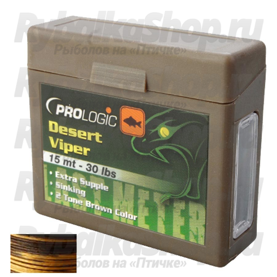Prologic Desert Viper - медленно тонущий поводковый материал плотного плетения без оболочки, имеет очень тонкий диаметр и двухцветную камуфляжную окраску. Темно и светло коричневый цвета чередуются, поэтому поводок практически невидим на дне. Обладает отличными абразивными свойствами и подходит для любых типов дна.