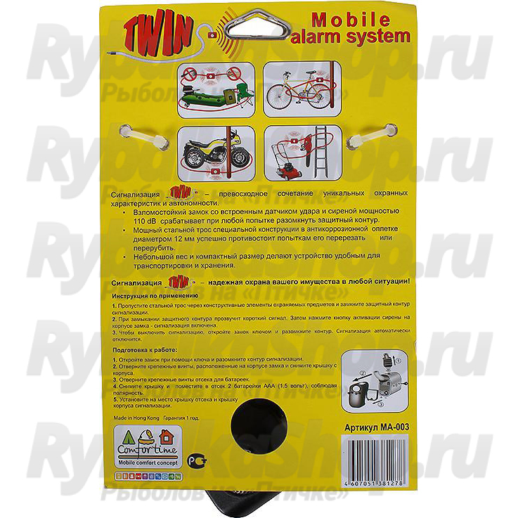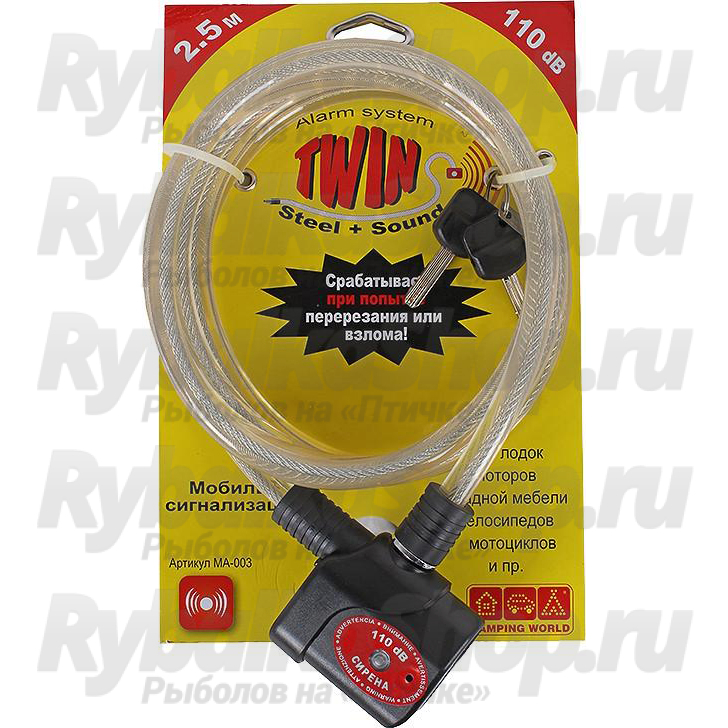 Сигнализация автономная CW Twins - прекрасно сочетает в себе уникальные охранные характеристики и автономность. Взломостойкий замок со встроенным датчиком удара и сиреной мощностью 110 Db. Тросс, диаметром 12 мм и длинной 0,8 - 2,5м, успешно противостоит любым попыткам перерезать или перерубить его. Благоджаря небольшому весу и компактным размерам устройство очень легко и удобно транспортировать и хранить. Работает сигнализация от двух батареек ААА.