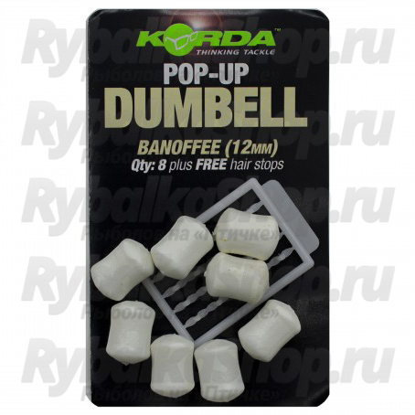 Korda Pop-Up Dumbell Banoffe – искусственная плавающая насадка в форме Dumbell, пропитанная ароматизатором Banoffe (банан + карамель). Приманка успешно протестирована командой Korda и показал отличные результаты на водоемах Европы. Pop-Up Dumbell имеет положительную плавучесть и не погружается на дно под весом крючка, в отличие от Slow Sinking модели. Может использоваться в качестве плавающей подсадки для тонущих бойлов, чтобы создать идеальную медленно тонущий монтаж. Или для использования с оснасткой Zig-Rig.