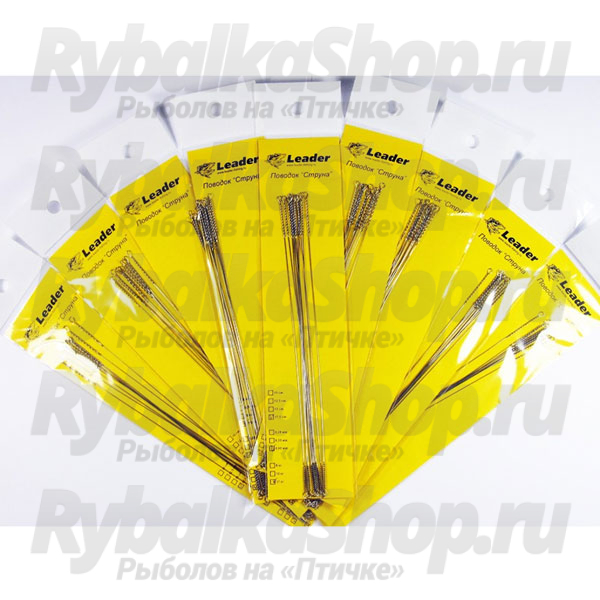 Поводки Leader "Струна" изготовлены из качественной нержавеющей проволоки с использованием качественной фурнитуры. «Скрутка к леске», сделанная с мелким шагом предотвращает попадание шнура между витков.«Скрутка к приманке» имеет оптимальное соотношение длины и количества витков, что позволяет с легкостью осуществить монтаж, при этом не теряется прочность соединения.