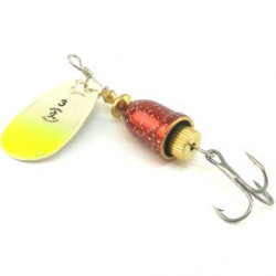 Лепесток выполнен из латуни, практически невесомый. Он характеризуется прекрасными динамическими показателями при погружении в воду. Лепесток блесны Lucky John Bonnie Blade начинает вращаться сразу же, как только приманка приходит в движение. Также стоит отметить, что блесна Lucky John Bonnie Blade может иметь сердечник цилиндрический или с шариками. Последний используют в приманках, размер которых соответствует номерам 0-2. Больший шарик располагается у крючка, он смещает центр тяжести в область хвоста, что увеличивает вращательные данные мелкой модели. Для вертушек с номерами 3-5 идет цилиндрический сердечник, которые обеспечивает крупной блесне Lucky John Bonnie Blade необходимый вес. Изготавливают его также из латуни с канавками, поперечно расположенными, которые увеличивают привлекательность блесны и стабилизируют ее положение под водой.