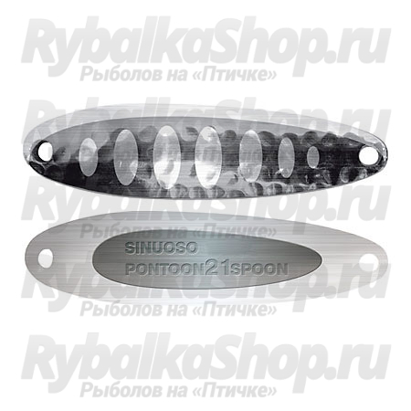 Pontoon21 Sinuoso Spoon - узкотелые колеблющиеся блесна с изогнутым профилем в хвостовой части с двусторонним рисунком и рифленой поверхностью. Внешняя сторона приманки, выполненная в виде рельефной поверхности с нанесенным на нее рисунком, способствует дополнительному привлечению хищника.