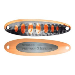 Pontoon21 Sinuoso Spoon - узкотелые колеблющиеся блесна с изогнутым профилем в хвостовой части с двусторонним рисунком и рифленой поверхностью. Внешняя сторона приманки, выполненная в виде рельефной поверхности с нанесенным на нее рисунком, способствует дополнительному привлечению хищника.