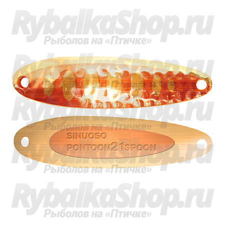 Pontoon21 Sinuoso Spoon - узкотелые колеблющиеся блесна с изогнутым профилем в хвостовой части с двусторонним рисунком и рифленой поверхностью. Внешняя сторона приманки, выполненная в виде рельефной поверхности с нанесенным на нее рисунком, способствует дополнительному привлечению хищника.
