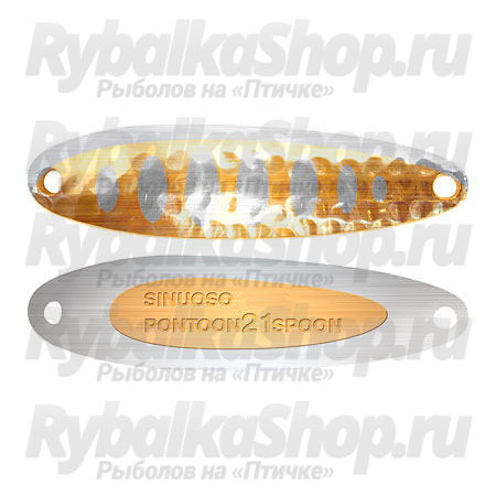Pontoon21 Sinuoso Spoon - узкотелые колеблющиеся блесна с изогнутым профилем в хвостовой части с двусторонним рисунком и рифленой поверхностью. Внешняя сторона приманки, выполненная в виде рельефной поверхности с нанесенным на нее рисунком, способствует дополнительному привлечению хищника.