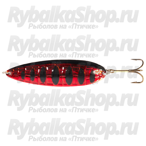 Приманка имеет вытянутую форму, выпуклость тела небольшая, ближе к тройнику профиль изгибается. Благодаря таким нюансам блесна Lucky John Croco Spoon идет размашисто, виляя в стороны и играя своими рифлеными боками. Внешняя поверхность приманки имеет рельефную структуру «под крокодиловую кожу». Кстати, отсюда и название, которое получила блесна - Croco Spoon.