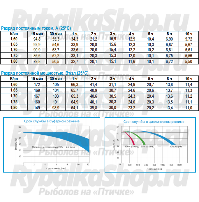 Хранение аккумулятора: если Вы планируете сезонную эксплуатацию АКБ, то после окончания сезона необходимо зарядить аккумулятор на 100%, после этого аккумулятор может храниться без вреда для его эксплутационных характеристик до 8-ми месяцев. Хранение разряженного аккумулятора более 1 недели - приводит к потери ёмкости на 30%-40%. Хранение разряженного аккумулятора более 1 месяца - приводит к потери ёмкости на 80%-100% (выходу из строя).