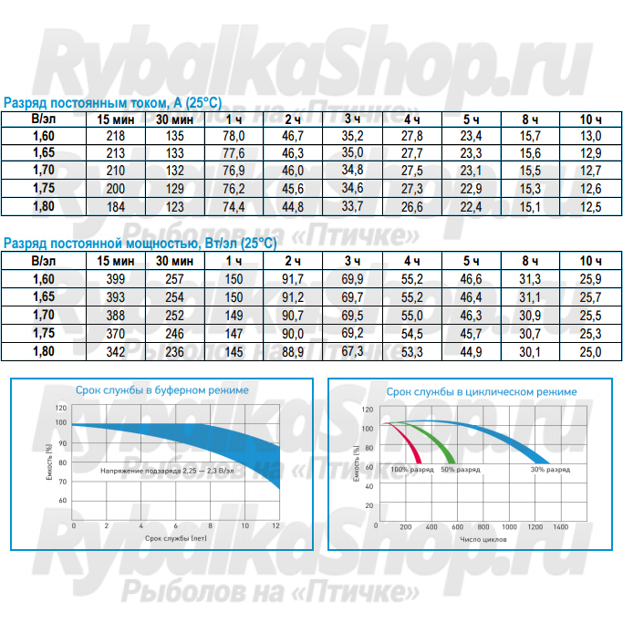 Хранение аккумулятора: если Вы планируете сезонную эксплуатацию АКБ, то после окончания сезона необходимо зарядить аккумулятор на 100%, после этого аккумулятор может храниться без вреда для его эксплутационных характеристик до 8-ми месяцев. Хранение разряженного аккумулятора более 1 недели - приводит к потери ёмкости на 30%-40%. Хранение разряженного аккумулятора более 1 месяца - приводит к потери ёмкости на 80%-100% (выходу из строя).