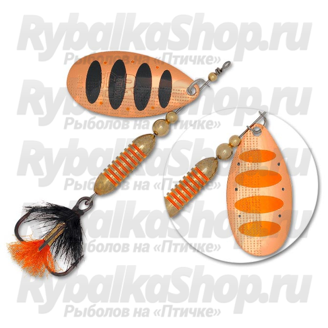 За счёт идеально подобранного размера тройника и лепестка, а также частоты вращения последнего, блесну можно смело забрасывать в траву, не боясь её оторвать, т.к. лепесток отбивает траву, не давая тройнику зацепиться. Прочный острый тройник оснащен мушкой, что положительно сказалось при ловле окуней, форели и жереха. Щуке также интересна эта приманка и она охотно ей атакует.