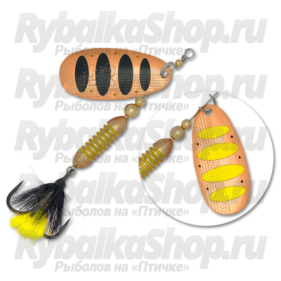 За счёт идеально подобранного размера тройника и лепестка, а также частоты вращения последнего, блесну можно смело забрасывать в траву, не боясь её оторвать, т.к. лепесток отбивает траву, не давая тройнику зацепиться. Прочный острый тройник оснащен мушкой, что положительно сказалось при ловле окуней, форели и жереха. Щуке также интересна эта приманка и она охотно ей атакует.