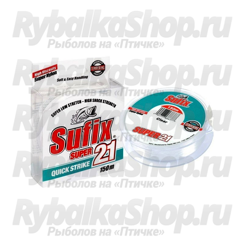 Леска Sufix SUPER 21 Clear 150м - высококачественная монолеска. Высококачественный нейлон в сочетании с процессом закалки верхнего слоя позволили создать леску с сверхнизким показателем растяжимости - только 21%, что в среднем меньше почти на 40%, чем у других монолесок. Леска Sufix Super 21® имеет низкую растяжимость, отличные показатели по крепости узла и крепости на разрыв. Низкая растяжимость и отличная чувствительность обеспечивают прекрасный контроль за приманкой и Вы никогда не пропустите поклевку - а значит, не останетесь без улова!