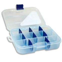 Небольшая односторонняя коробочка для хранения рыболовных мелочей. 8 съемных перегородок.