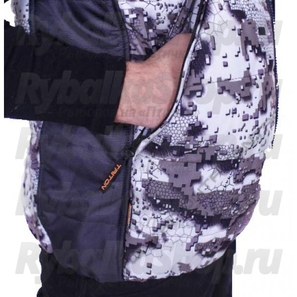 Жилет подходит для охоты рыбалки и активного отдыха, создавая дополнительную защиту от ветра и непогоды. Верхние ткани у жилета комбинированы между собой по цвету. Полклад из флисовой ткани. Утеплитель-TRITERM SISTEM, представляет собой переплетение спиралевидных пустотелых волокон, образующих сильную пружинистую структуру. Это позволяет изделию долго сохранять свою форму и легко восстанавливать ее после компрессии. По теплозащитным свойствам TRITERM SISTEM максимально приближен к натуральному пуху, но в отличие от пуховых изделий, легко подвергается стирке, быстро сохнет, не впитывает влаги и запахов, хорошо пропускает испарения от тела, не вызывает аллергии, а также способен сохранять тепло, выделяемое нашим телом, но не «перегревать» его при длительном использовании.