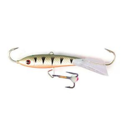 Lucky John Pro Series Mebaru – балансир, разработанный в Японии, для ловли хищной рыбы со льда и в отвес с дрейфующей лодки. Приманка изготовлена из свинцового сплава с корпусом и хвостом, сформированными из цельного морозостойкого и ударопрочного пластика ABS. Длинный хвост обеспечивает четкие развороты приманки в крайних точках траектории движения. В спинном плавнике, изготовленном из латуни, имеется три отверстия. В зависимости от точки крепления, игра приманки изменяется. На приманке установлены крючки Owner. Рекомендуется для ловли судака, щуки, форели и окуня.
