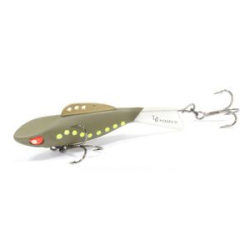 Lucky John Pro Series Mebaru – балансир, разработанный в Японии, для ловли хищной рыбы со льда и в отвес с дрейфующей лодки. Приманка изготовлена из свинцового сплава с корпусом и хвостом, сформированными из цельного морозостойкого и ударопрочного пластика ABS. Длинный хвост обеспечивает четкие развороты приманки в крайних точках траектории движения. В спинном плавнике, изготовленном из латуни, имеется три отверстия. В зависимости от точки крепления, игра приманки изменяется. На приманке установлены крючки Owner. Рекомендуется для ловли судака, щуки, форели и окуня.