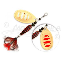 В свою очередь, сердечник из вольфрама придает блесне лучшую устойчивость при проводке. Сама дужка лепестка, отвечающая за крепление лепестка на ось, выполнена из жесткой, устойчивой к деформации, проволоки. Края дужки расплющены и в них высверлены отверстия. И последнее, ось блесны – это стальная, нержавеющая проволока с достаточной упругостью. Ее задача постоянно сохранять всю конструкцию приманки в рабочем состоянии.