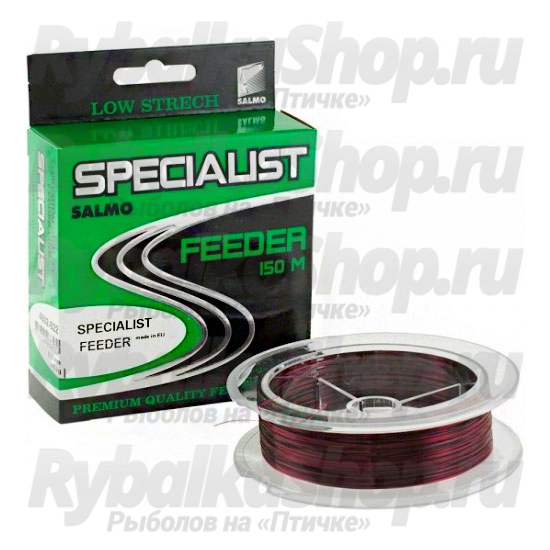 Salmo Specialist Feeder 150m - cпециальная леска для ловли на донные снасти: фидер и пикер. Высокая прочность, низкая растяжимость и мягкость – отличительные черты этой серии лесок. Высокочувствительная леска передает все поклевки на сигнальную вершинку удилища. Цвет лески – чередование черного и красного цвета, размотка по 150 метров. Леска устойчива к ультрафиолетовому излучению.
