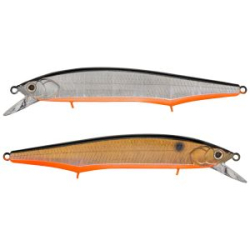 Классическим вариантом воблера типа minnow можно назвать Alpha Minnow от Strike Pro. Основное преимущество модели – это высокая универсальность, отзывчивость и уловистость на разных вариантах проводки. При ловле твичингом Alpha Minnow четко рисует широкую змейку и прекрасно отзывается на разные по силе рывки. При этом при равномерной проводке воблер легко заводится на невысокой скорости. При остановке воблер способен замирать на месте на достаточно длительное время. Если используется нетяжелый металлический поводок, то степень плавучести данной приманки приближена к нейтральной. Приманка выпускается в двух вариантах длины: 9,5см и 11,5см. В размере 9,5см игра воблера средней частоты и амплитуды, в размере 11,5см несколько большая амплитуда и меньшая частота. У данной модели есть шумовые камеры. В меньшем размере воблер оснащен двумя тройниками VMC, а в большем тремя. При резком хаотичном твичинге способен показать прекрасную результативность для поимки щуки.