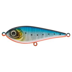 Приманка обладает очень красивой игрой благодаря особенному расположению огрузки. Во время пауз проводки приманка соблазнительно покачивает боками. На коротких ритмичных рывочках джеркбейт красиво рыскает из стороны в сторону. На более размашистых рывках игра Buster Jerk V приобретает широкую амплитуду. В проводку приманки обязательно нужно включать непродолжительные паузы. Джеркбейт очень прост в обращении и легко управляем. Strike Pro Buster Jerk V предназначен для ловли средней и крупной щуки и крупного окуня.