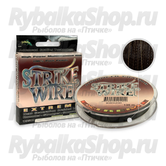 Плетеный шнур цветной Strike Pro Strike Wire Extreme имеет темно-зеленую окраску и выпускается в размотке 135 метров с диаметрами от 0,08 мм до 0,21 мм и разрывной нагрузкой от 4,5 кг до 15 кг. Широкий выбор диаметров шнура позволяет подобрать оптимальный вариант под различные условия ловли.