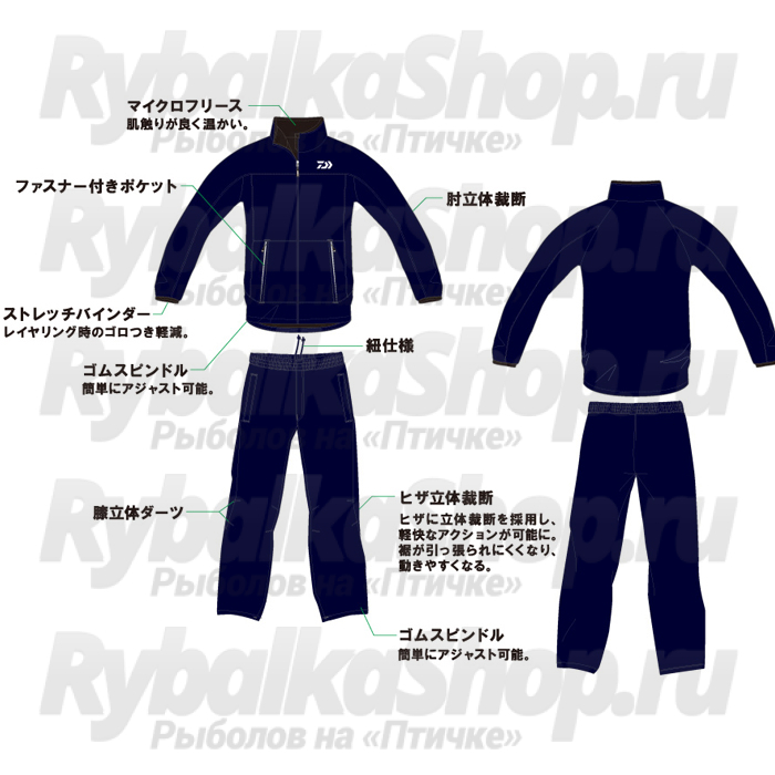 Костюм-поддевка Daiwa DI-5206 Navy - ультра комфортный, не тяжелый и простой в использовании, сделает любой отдых приятным и незабываемым. Такого рода костюм служит утеплителем в зимнюю пору и поддевается под, непосредственно, верхнюю одежду. Высокое качество материала, из которого сделан костюм-поддевка Daiwa DI-5206, позволяет удобно себя чувствовать даже в самых экстремальных и не простых условиях. Его можно носить не только в прохладную пору, но еще и в мягкую весеннюю погоду, как обычный спортивный костюм. В такой одежде удобно за рулём автомобиля или другого автотранспорта. Можно работать на даче, ходить на прогулку, ведь сам по себе, он очень практичный и универсальный.