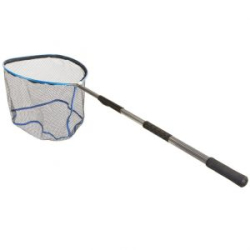 Складной подсачек с треугольной формой сачка с сеткой из лески и с телескопической рукояткой.