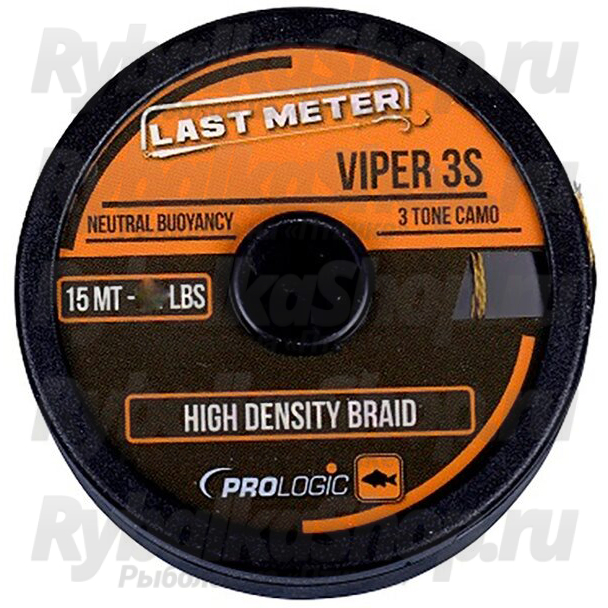 Камуфлированный трехцветный поводковый материал Prologic Viper 3S 15m с высокой плотностью материала, сделан из PE волокон.